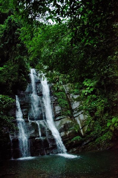 下杉林溪大概五點半,看了看時間決定再衝一座瀑布,遊記上面寫說路平坦好走,瀑布挺壯觀,結果一路上:1.大霧,視野差 2.馬路上凹凸不平,而且有許多大小石頭或是小河流 3.上下坡度起伏超大。騎到手都快受傷了!終於到了瀑布,還好不用走,就在馬路旁,瀑布水量還不錯,高度普普,但下面的深潭加分。稍作停留就準備離開南投到嘉義了。