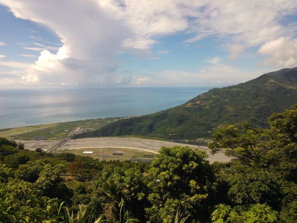 金針山的入口就在早餐店附近,離市區不遠,上山的路有點崎嶇,很多區段都只能容納一台車,如果有對向車輛要很小心,但路不算特別陡,半山腰有個小涼亭,可以看到漂亮的花東海岸,還有岸邊的小平原,比起西部,東部的山區明顯較少種植檳榔和茶葉,滿山的原始森林,看起來很舒服。