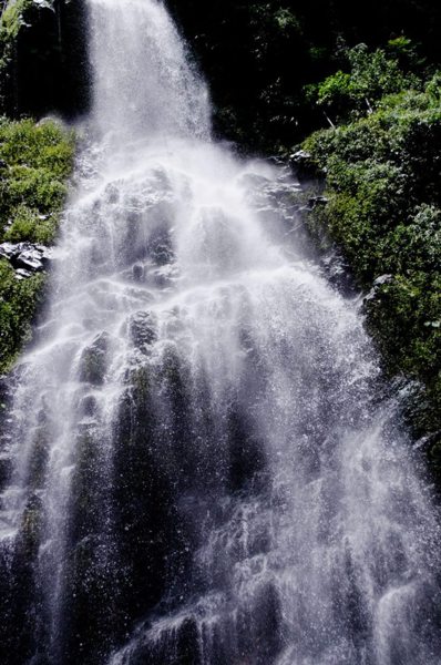 回到台九線前再多繞了一個白玉瀑布,比起小小的知本瀑布,白玉瀑布氣勢驚人,沒有被圍起來加上底下沒有深潭,可以整個靠到瀑布下欣賞,瀑布高度大概有4.5層樓高,水量豐沛,拿起相機準備拍照時,鏡頭都可以感受到水霧的侵襲,人站在瀑布周邊也會有種朦朧且潮濕的感覺。