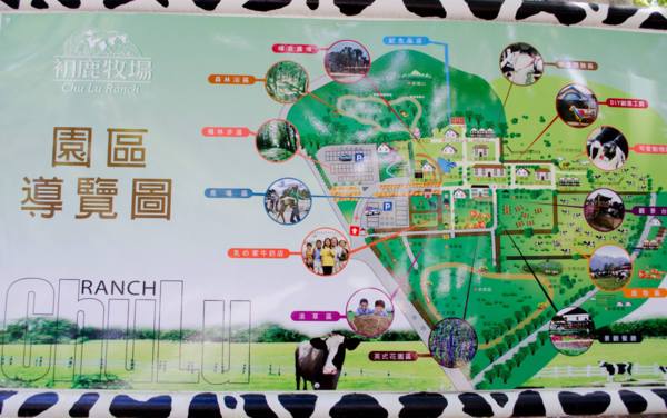 下午有兩個牧場可以選擇,初鹿跟瑞穗,我強迫大家選初鹿,騎了一陣子的車才到山上的牧場,門票…100/人,機車停車一台要30,進到牧場,假的牛比真的牛還多(可能太熱牛去避暑都看不到),商業化的程度到達傳奇的等級,牧場裡提供的額外娛樂每項都要收錢,我們買了奶酪和牛奶,稍微散散步,但真的受不了到處都是畫成彩色的牛,和各式各樣奇怪的裝置藝術,還有無數的小孩在奔馳,在牧場待不到半小時,我們宣告認賠殺出,快速離開這個一點也不自然的牧場。