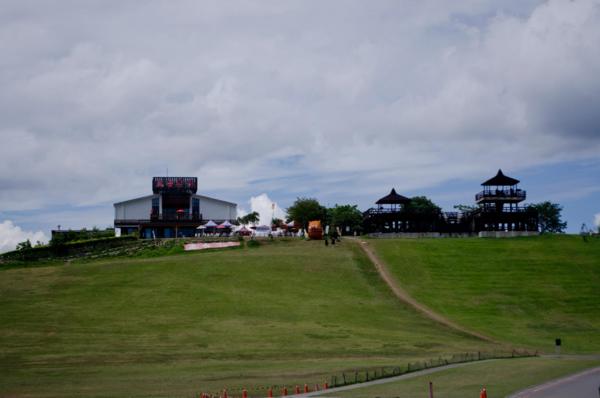 下山回到台九線後馬上又上山去鹿野高台,但去的時間錯誤,熱到不行不說,沒有熱氣球只有草原上的熱氣球底座,如果要滑草可能會被曬成乾,也沒有人跳飛行傘給我們看XD只好怒買鳳梨釋迦和蜜香烏龍冰來吃,味道很棒,MATT跟北迪超愛。