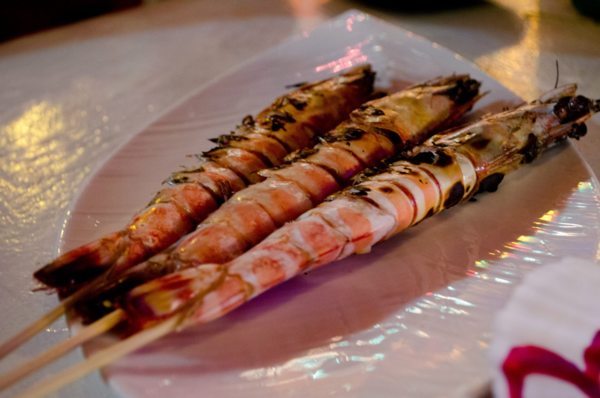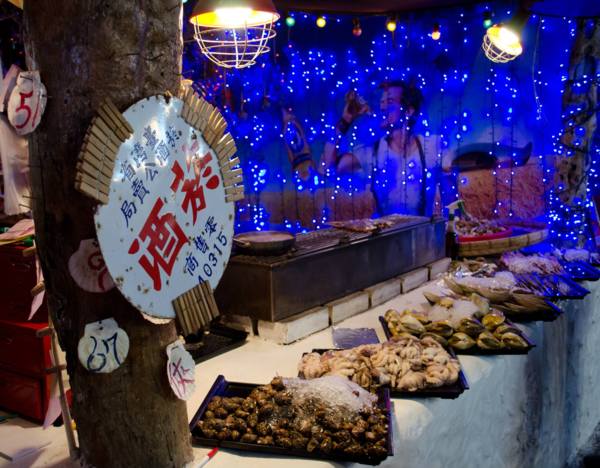 卸下行李,直奔自強夜市,這夜市不大,但人很多,也有不少陸客,幾乎每間店都呈現爆滿狀態,先抽號碼牌吃了林記燒番麥,店家使用的玉米非常普通,但醬料調製的很入味,加上烤玉米的旋轉機器,讓整根玉米熟得剛剛好,算是彌補先天不足,滿好吃的;然後喝了妙不可言果汁,老闆依然跟上次一樣,對著女顧客不停的講笑話逗得她們超級開心,然後只跟我們說:三杯120,謝謝光臨…;之後看到有投籃機挑戰,想起過去自己滿有自信的投籃機,就下去玩玩,達到店家標準,拿了一支小玩偶;高大俠殼燒蝦,店裡布置得很有感覺,但我很怕上面的杯子或提燈掉下來砸到我的頭><,烤蝦彈牙多汁非常好吃,章魚烤得很生,吃起來有點腥;最後買了三份棺材板,作為今天晚餐的句點,很滿足。
