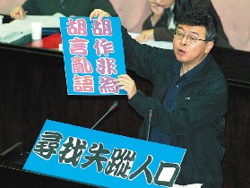 選後立法院首次國事論壇,泛藍立委要「尋找失蹤人口」。邱毅指出,選前陳水扁坐著輔選卡車,到處胡言亂語、胡作非為,勇猛似虎,但選後,卻不見人影超過72小時。