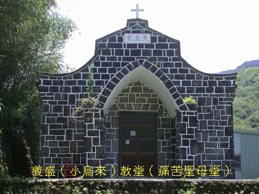 義盛(小烏來)教堂(痛苦聖母堂):聖堂成立於1956年。不久後因葛洛莉颱風來襲,教堂遭受毀壞。新聖堂於其他地點以石頭重建,但屋頂仍時常損壞,至少重修四、五次。1983年由上級和龍神父協助,屋頂以水泥和鐵條重修,教堂並且重新獲得祝聖。