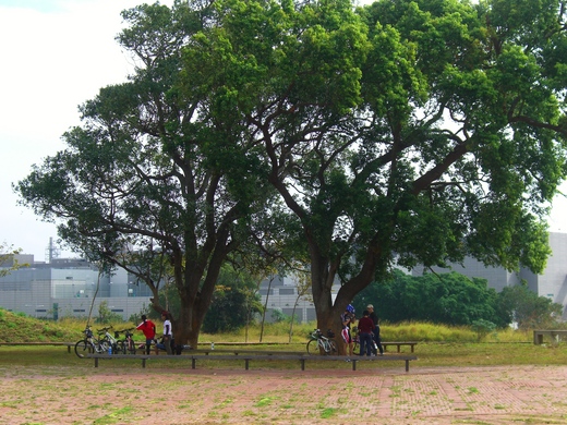在那裡呢 ?騎在一整排的綠蔭下一定很棒 !現在該稱台中市了吧!