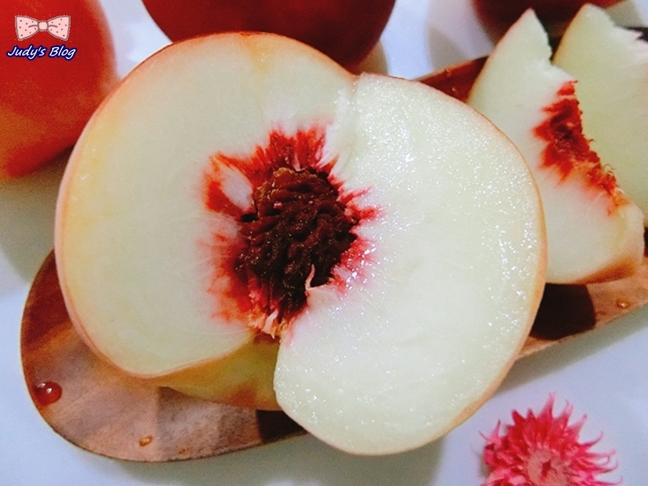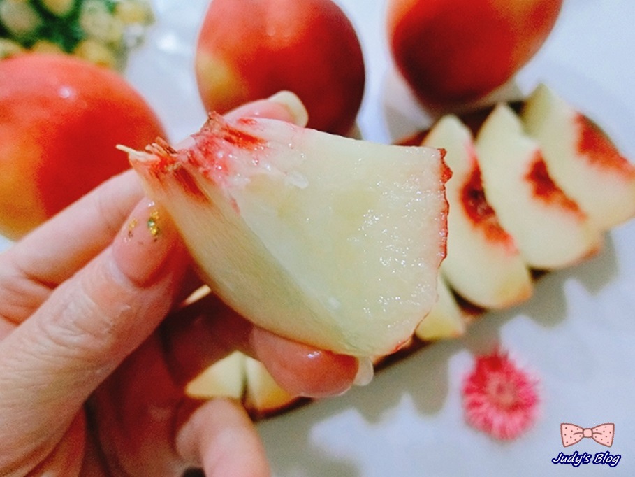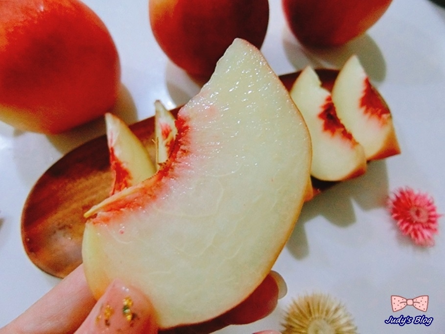 所以Judy老師拿起擁好美好濃郁香氣水蜜桃一切開~~~~哇~~~~~整個果肉實在好新鮮、纖維好細緻