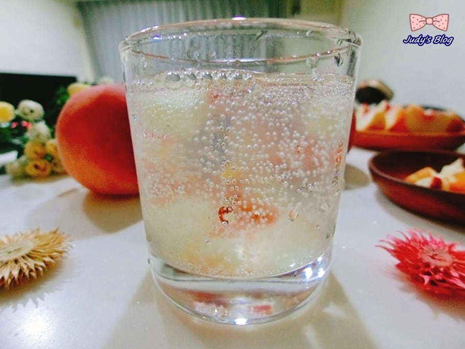 所以只要在氣泡水中加入切好的水蜜桃