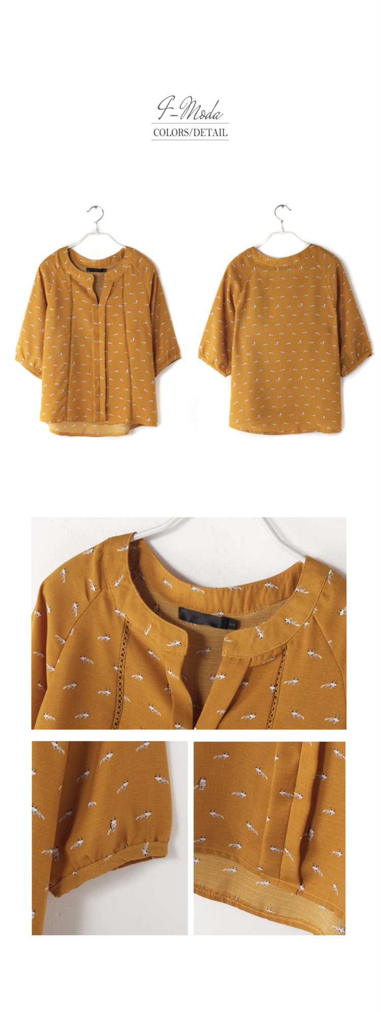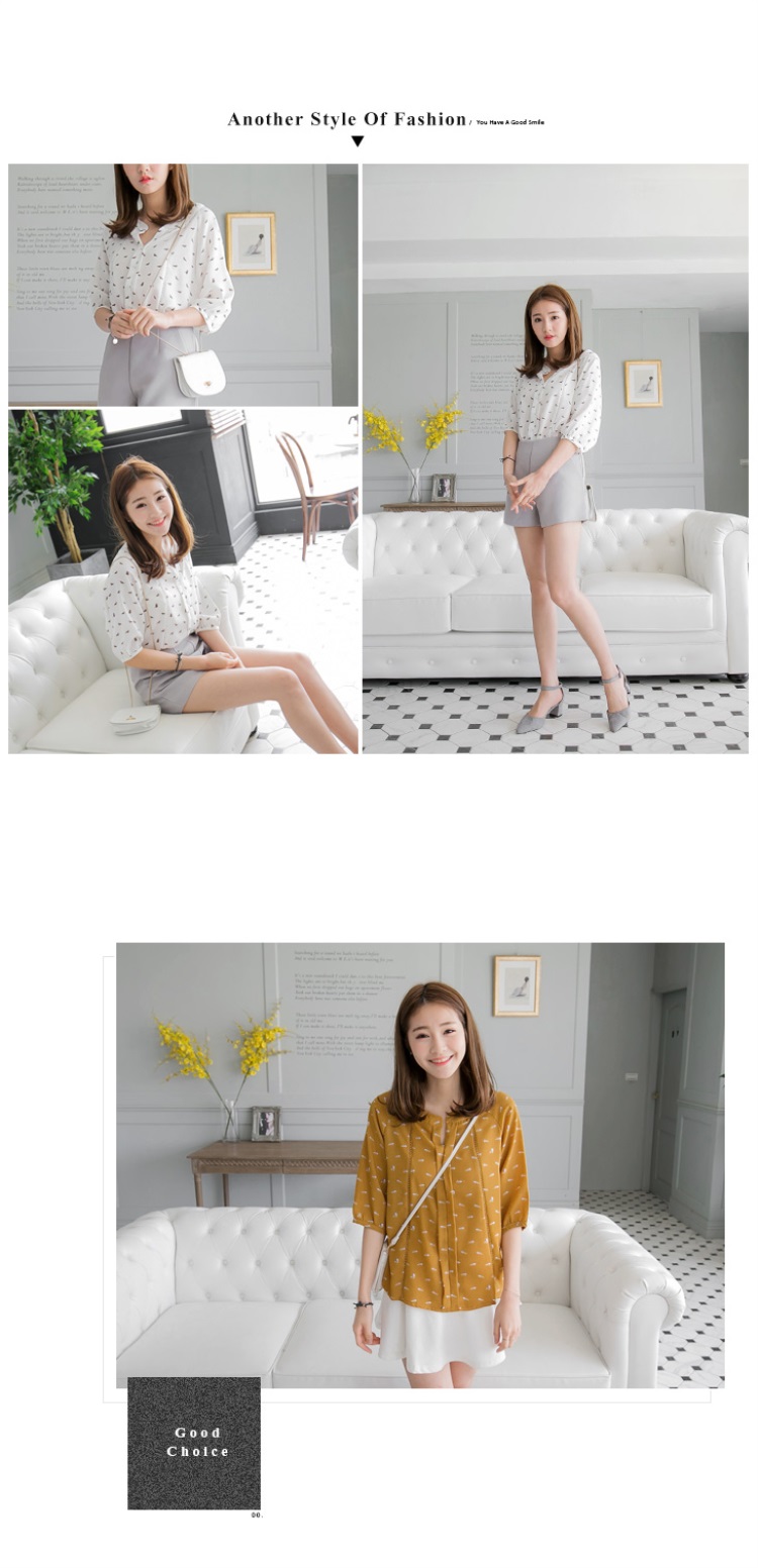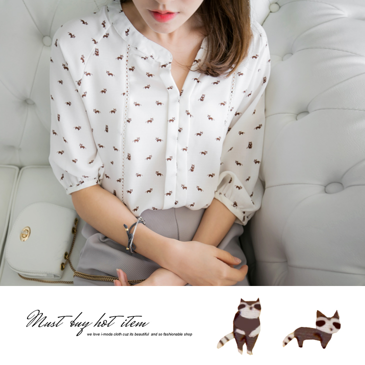 0613新品 滿版小狸貓燙印七分袖V領上衣.2色