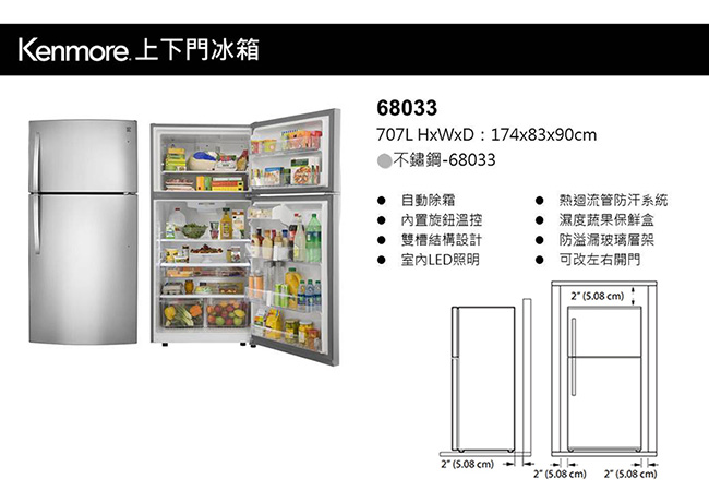 就是這個光!分享【美國Kenmore 楷模】707L 上下門冰箱-不鏽鋼 68033最近也在看,考慮很久,主要也是考量之前有人說的冰箱是很成熟的產品了,所以就在「空間、價格、外型」做優先考量,最後就是老婆大人的事情了 哈哈。