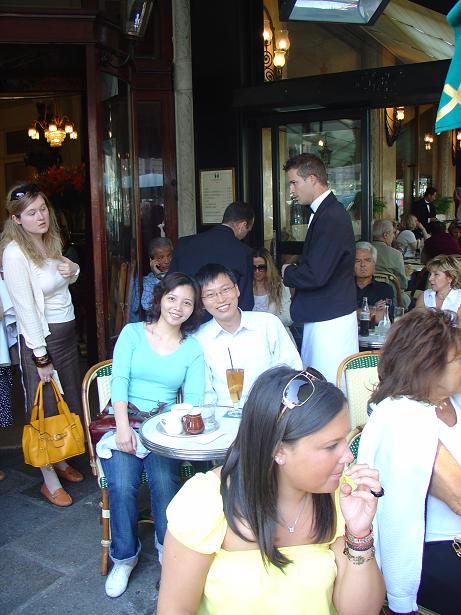整個巴黎最有名的咖啡店之一,是雙叟咖啡館(Deux Magots),雖然許多人認為這兒既然成名已久,觀光客眾多,價格必然被拉高,但我們發現似乎並不盡然如此。我們且和鄰座的法