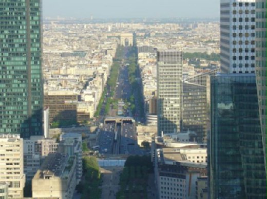 之後前往香榭麗舍大道,原要代友購物,但五一假期LV總店也休息,我們就到凱旋門,門下正有一紀念儀式,許多老兵持旗列隊,為不知名的英雄敬禮。隨後我們前往新凱旋門,買了票到頂樓觀賞巴黎市景。布倫納森林公園的規模令人一驚,拉德芳斯辦公區的高樓美廈也與多日來習見的老宅大不相同。而市區的無邊無際,美觀清爽,綠樹演映,都令人精神一振。