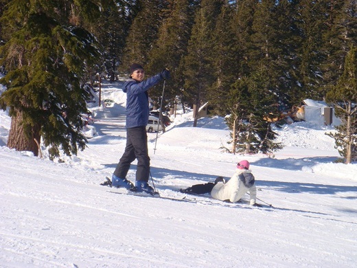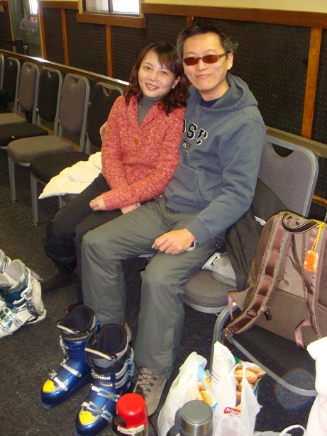 滑雪場甚大,且有好得路多處。毫無滑雪經驗的老包、Lily開始艱辛的適應過程。穿鞋就令人頭疼,Kiwi與Lily的腳不大適應Ski的鞋型,Kiwi滑了三分之一段路程,決定放棄,說下回要試試鞋子大得多的snow board,然後就閃進服務區用眼睛滑雪。老包則很適應這處雪地,所以用了十八種不同的方式熱情的擁抱了這片雪,包括左前翻、右前翻、後翻等,或者倒栽蔥時雪橇飛出去插入跑道外的雪地瞬時無影無蹤,或者衝出跑道而從樹間穿越時陷入雪堆裡幾乎沒頂。直到Bruce提點了老包幾項基本動作,老包才恍然大悟,告別了蹲在雪地上練武的命運。到了第八次從十一號雪道滑下來時,老包已成為Lily的老師,最後甚至「很A」的環抱著Lily左右前進。Nicole帶著小孩不便下場滑雪,Bruce當天發燒感冒,所以也淺嘗即止,但他在短短的時間不僅指導了老包,也充任了漪雯的老師,真是豪情義舉,可敬可佩。Victor與Sally如魚入水,不斷擺pose照起像來。Carol與 Leo每年都要滑個幾回,Carol每回要滑了十幾、二十趟才罷休,而Leo則總要嘗試從山頂往下滑的快感。這次因為時間有限,兩人並未過癮,決定盡快舉辦第二次滑雪之行。有道是,「Kiwi快意上餐館,Leo豪情下山巒」,「Carol快意二十滑,老包顛倒十八摔」,又有云,「Sally擺pose當正妹,Victor抓拍是帥哥」,「Bruce指點兩迷津,Lily轉圈一陣暈」。