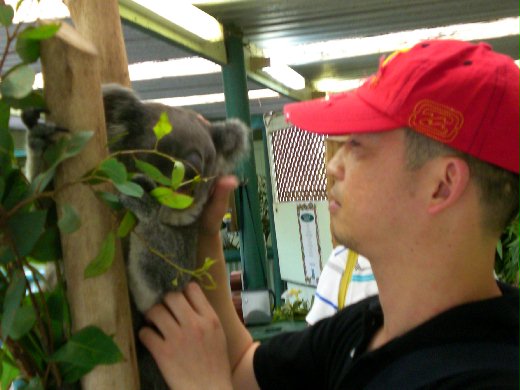 這座動物園裡全是南半球特產的動物,澳洲是個非常美麗的自然教室國度,教育大家面對野生動物該有的正常態度,那天天氣很好,又是星期四,我有近30分鐘與無尾雄單獨對話相處,一開始它並不理我,只顧吃葉子,但越來越熟,最後,連離開它都有些不捨。
