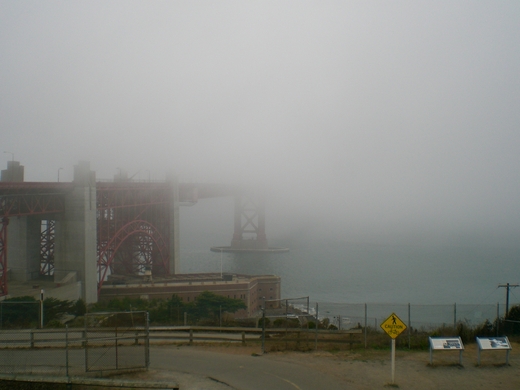 到舊金山第二天一大早,我興致一來,也想避開人潮,就搭乘MUNI市區公車去看那美麗的金門橋,結果,看到的就是你現在看到的-霧煞煞。