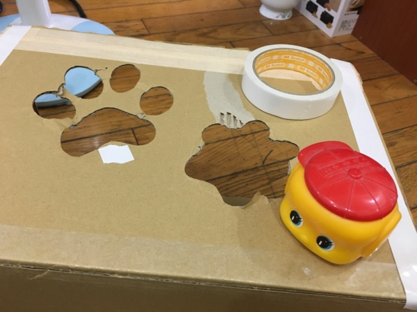只是覺得,貓屋的主結構還在,貓抓板也都還很堅固,丟掉也還真捨不得。就在一邊喝咖啡一邊看HGTV(Discovery旗下居家樂活頻道)的時候,覺得手好癢,應該要找個東西改造一下,眼角餘光瞄到貓屋,還有一拖拉庫的紙膠帶,決定自己動手DIY,來當個貓屋修繕大師!