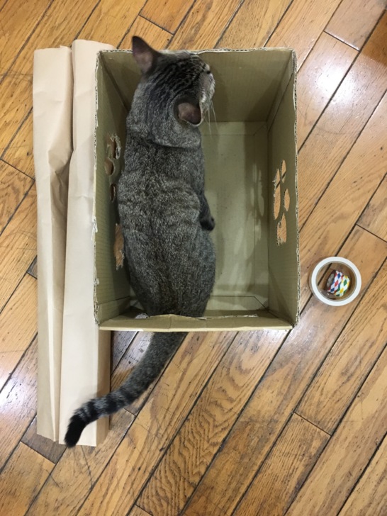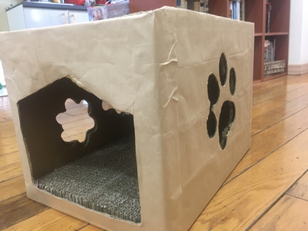 2.牛皮紙 ~ 包覆貓屋,遮掉不好看的拼補區域