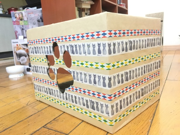 剛好還有之前用剩下的牛皮紙,評估一下貓屋,只要側邊四面重新鋪上牛皮紙就可以,再挑選紙膠帶裝飾,簡單幾個步驟就能變成獨一無二超酷貓屋。