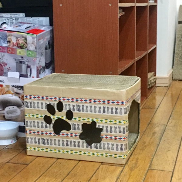 不知是不是我家的喵太勇壯,貓屋買了一年就快要解體了!屋門上方快掉下來,暫時用紙膠帶連接起來也沒用,用透明膠帶會閃亮亮,差點成了喵的磨牙新玩具。下方的紙板也裂開,可愛的窗戶就不用說了,整個貓屋跟補丁屋差不多,想說趁機Shopping,買個更卡哇伊的貓屋好了。