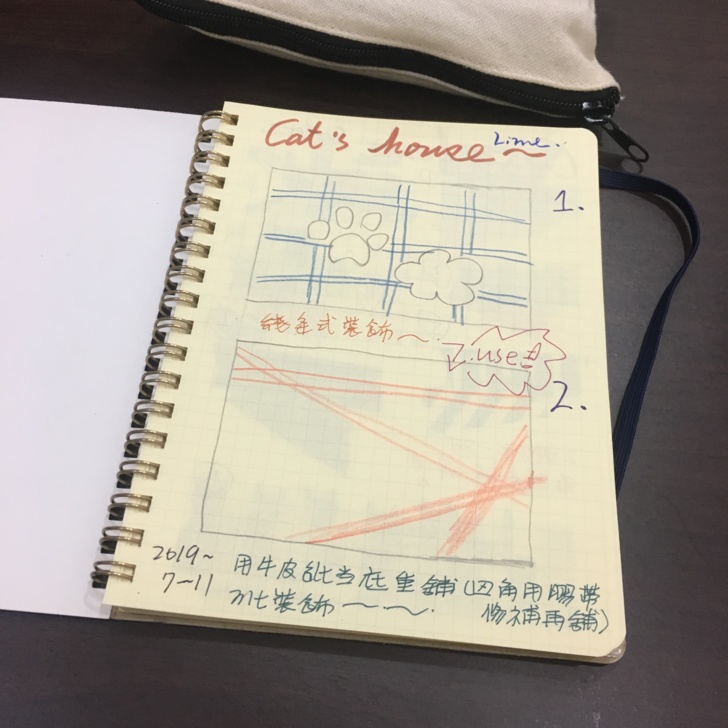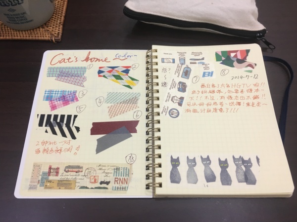 (看HGTV的節目,設計師都會拿磁磚、地磚的樣板搭配決定用哪的比較好,我也拿筆記本,挑了幾種紙膠帶搭配一下,裝飾的形式也簡單畫了草圖。筆記本用的是,日本製Rollbahn的筆記本)