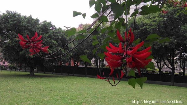 看到豔麗的珊瑚刺桐,忽然覺得像「跋桮 pua'h-pue」,真有趣。