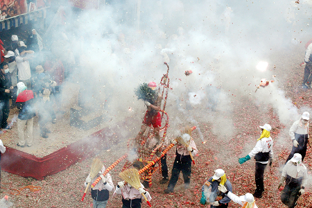 台東炮炸寒單爺今年增加一組「民間版寒單爺」,總計19場。今、明2天台東市熱鬧滾滾,鞭炮聲和煙霧將淹沒市區,直到深夜。(中央社)