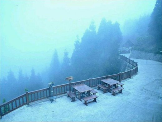 眼前蒼茫一片,霧氣繚繞,山色矇矓別有風味,深深淺淺層巒相疊,如離世之仙境,凌雲端窺下界。