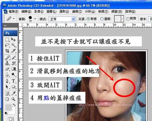 2010/12/7 教你在照片上把痘痘變不見 連雅稚都會喔!!