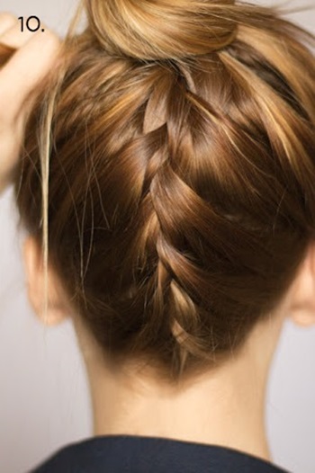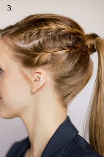 一個是將瀏海編成辮子再往後加入馬尾中,