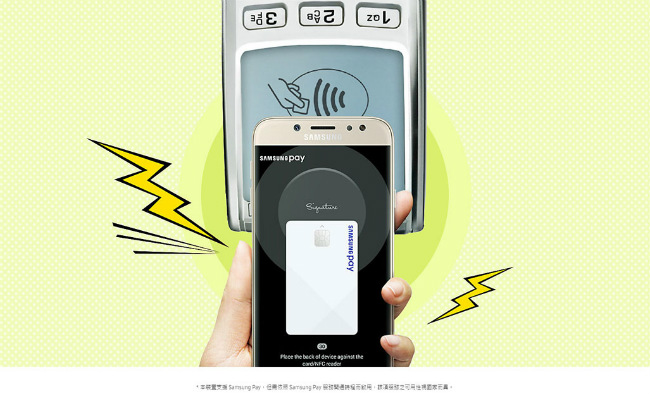 SAMSUNG Galaxy J7 Pro 搭載 Samsung Pay,可同時支援磁條與 NFC 感應刷卡機,透過指紋辨識授權交易,保護每筆消費,安全又便利!