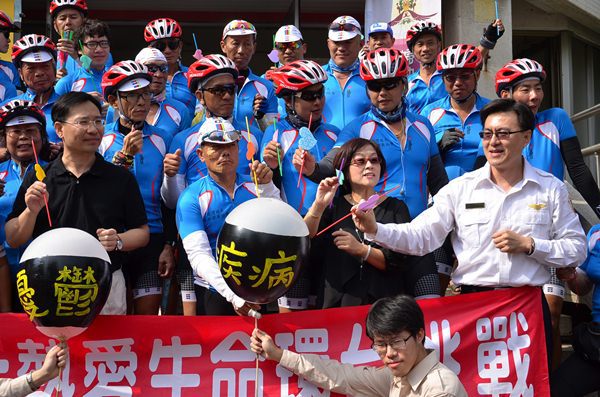 臺灣癌友運動發展協會帶領23位癌友,自11月2日至11日以自行車環臺,證明生命「騎跡」,9日行政院中辦及移民署臺中市第一服務站設點迎接,為癌友加油、打氣。 來自大陸的新移民李永紅,和一群已繞盡台灣四分...