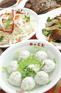 以蝦米為主要調味的「涼拌白菜心」特別清爽。「山東燒雞」不似坊間的濕潤,口味顯得更為渾厚內斂。「紅燒肥腸」完全不加辣油,燒得肥腸Q嫩、鴨血夠味。「豆干肉絲」炒得噴香又鑊氣十足。李濤點這兩道菜時,一定加註:「鴨血多一點,肥腸少一點。豆乾多一點,肉絲少一點」。用真正黃魚漿打成的「魚丸湯」,入口即化,鮮嫩地彷彿一尾黃魚在嘴裡優游。