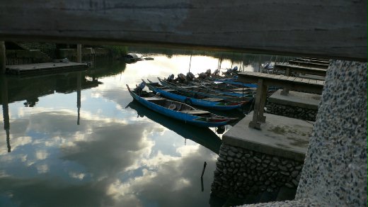 三腳渡,被喻為台北最後一個擺渡碼頭,除了古舊的舢板,躺著河上,在冷冽的寒風中浮沉這裡老阿伯跟著卡拉ok放送,唱著久違了的台語歌曲,不懂得把"迴音調整"收回來,粗里粗氣的迴蕩在悠閒的午後,旁人說,這卡拉ok已經被偷過一套!這裡的東西從來都是"公開"的 棚架旁就是全台唯一一座活動的小廟宇"天德宮",整座廟包括龍柱幾乎都由鐵皮打造,簡直是神奇!
