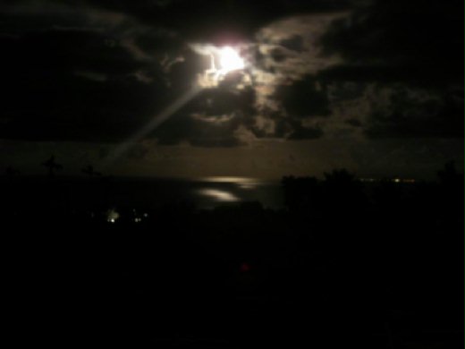滿空星斗再加上終於擺脫烏雲的月光, 室內擺個小蠟燭似乎就很足夠, 大夥喝著紅酒吃著cheese, 我則躺在長倚上看著月亮, 遠方海面上的成排燈光, 讓我很快辨識出綠島的方向, 漆黑的海面也被月光照的通明, 在月光下捕魚應該是不需要燈光吧? 我猜…