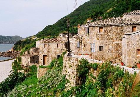 第一眼看到芹璧時, 果然讓我驚艷, 大片的黃色的花崗岩方形建築石屋群就在眼前大片展開, 在夕陽餘暉下, 更顯亮眼, 怎麼說呢, 就是WOW…的感覺吧。想到晚上就可以睡在這些建築物裡, 更是快樂的想跳起來。趁著夕陽餘暉, 趕緊開始上上下下沿著狹窄的石階遊逛整個芹壁村, 雖然往日繁景不在, 現在也剩不到10戶人家, 但別有ㄧ番荒涼及靜謐之美,我一值逛到太陽隱沒在海平面下, 才終於甘願回到住處。