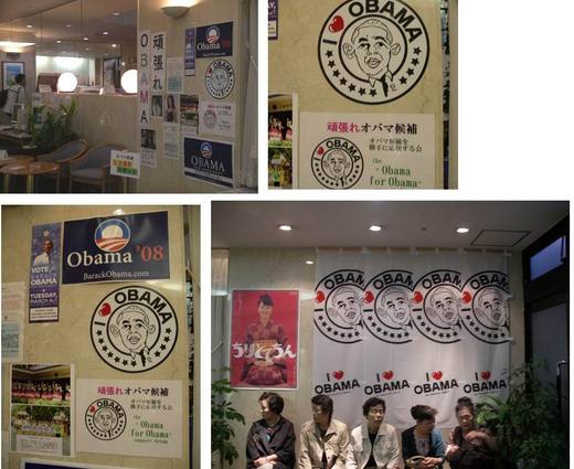 究其原因原來是這裡也叫OBAMA(小浜的日文發音),難怪當我們一抵達這個小鎮,到處都看到支持「歐巴馬」的標語、旗幟,甚至還有「歐巴馬」後援會遠赴夏威夷參加「歐巴馬」的遊行活動報導。這個非美國公民、也沒有選舉權的小鎮,竟然熱情到連國外媒體都注意到了,一經報導後,連在美國的「歐巴馬」本尊也都覺得不可思議呢!後來「歐巴馬」也寫了封信來感謝他們的支持,而我住的飯店,更是貼滿各式「歐巴馬」的支持標語、旗幟、歐巴馬的感謝函、夏威夷市長的友誼信等,在日本謹慎的的觀光飯店裡,會貼滿社長個人支持意向的候選人旗幟,還真的在這裡第一次看到,除了新奇只能說這裡的人有種鄉下人的熱情與真實。
