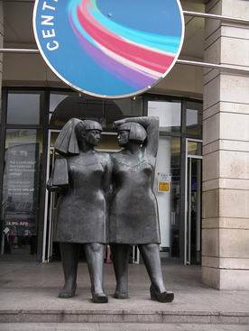 難得今天天氣不錯,不熱也不雨,但悲慘的事情一樣發生,我們來的太晚,連草地轉播場的門票都在一大早就賣完了,看著一堆不死心的人仍舊排在大隊人龍中,期待有人不想要可以釋放出票,我們是覺得完全無望,只能沿著球場高高的圍牆往回走,既然球賽看不成,去Museum總成吧?還是不走運,得有球票才能進去,似乎Museum是附屬在你來看球賽順便免費進去,(門口的阿伯竟然建議我們15號以後再來,瘋啦,我只是不甘願就這樣回去罷了,又不是真的很想進Museum),這下真是不走運到極點了,不過都來了,那就拍幾張照片囉,不肯面對現實的克莉絲就是不肯拍照,她說不要留下任何遺憾的照片,讓她想起悲慘的ㄧ天。
