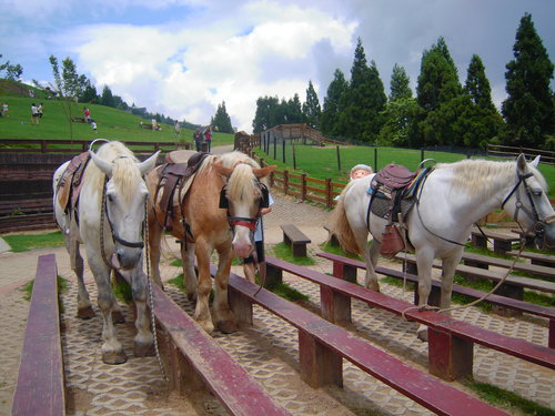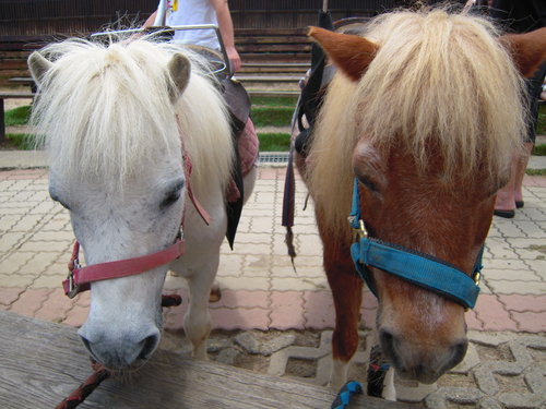 也有迷你馬供小孩騎乘.看他們一臉無辜樣