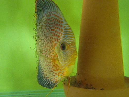 各位魚友在七彩神仙魚繁殖問題上,必定看過很多相關資料文章,如繁殖缸的尺寸,水質,PH值,水溫,換水,生化系統,環境,照明,配對,產筒,驅蟲,餵食,公母魚認定,生殖器特徵分辨,排卵期,白卵,吃卵,孵化,幼魚吃掉,上身,乳汁,離缸.....等問題,其內容大同小異,因此搜集各前輩的經驗和一些相關文章,給大家互相研究參考指教.