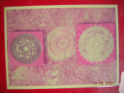 「凡山隴平岡,自祖山落脈,或龍身帶石,或本山帶石,則穴中必有似石非石,似土非土之土,在穴中搓之如粉,見風日即堅硬如石,極佳者成太極暈」