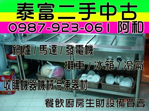 阿和0987923061泰富二手餐飲廚房具設備中古頂讓買賣估價切肉封口機咖啡機快速爐展示冰箱鍋爐水塔馬達發電機拆除收購冷氣冰箱餐廳餐飲生財設備廚房咖啡機鍋爐水塔飲水機馬達冰水發電機煎台烘培烤箱油炸攪麵麵絞肉機廚具生財工器具設備工商業廠機器械