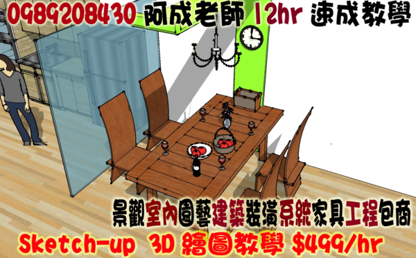 3d電腦繪圖Sketchup教學授課家教$499/hr一對一12hr速成笨蛋可練成/室內空間景觀園藝家具設計系統櫃裝潢裝修建築展場規劃設計松山板橋萬華新莊南港內湖汐止東湖西湖大直士林天母北投淡...