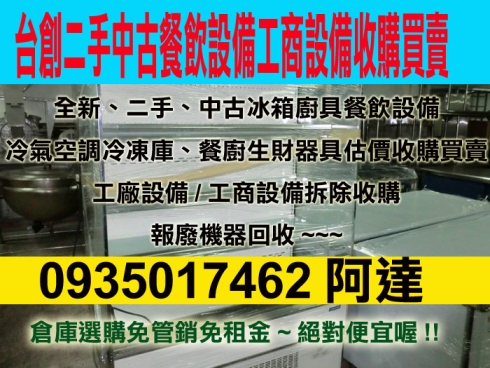 二手中古台創買賣估價餐飲設備工商業廠機器機械阿達0935017462高價回收購買賣淡水汐止蘆洲石碇三芝平溪五股永和雙溪坪林烏來金山鶯歌泰山基隆七堵安樂暖暖仁愛木柵公館市政府大直台北車站雙連民權西忠孝敦化科技大樓忠孝新生西門善導寺中正紀念堂台大醫院古亭北投明德劍潭圓山三峽林口板橋三重八里萬里