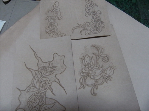 今天下午完成的皮雕飾片粗胚未染色照,預計明早上色(油染)及成型。.........待續
