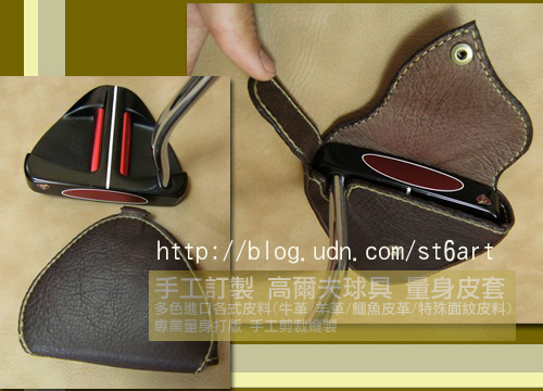 這是近期交貨的手工皮套訂作作品,雖然說高爾夫球具的重點還是在於各家球桿和桿頭的設計及材質~但不論這個部份,我倒是看到不少隨球具附贈的皮套都出現衣身不合的情況,嚴格講個人是覺得這似乎有點像︰在路上看到漂亮的倩妹,但卻穿了不合身的衣服或鞋子那種感覺,也難怪愈來愈多人需要像我們這種怪人的陪伴~哈。剛好今早完工前日追加的一件,就分享阿寶的這件量身作品,不過除了看得到的外在物相,我在皮套內可也花了不少工咧~這部份就只針對有需求的朋友再作說明了...