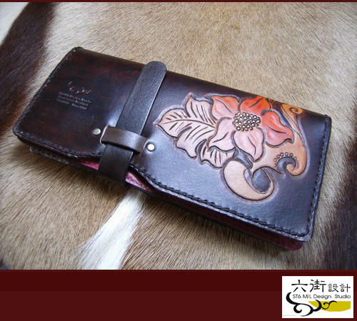 今日交貨的手工皮雕真皮長匣,使用人為女性,為了搭配手工皮包整組味道而追加訂製品。客戶指定需求包含皮色搭配大包及不要加拉鍊層在內部外,其餘交由我全權處理。