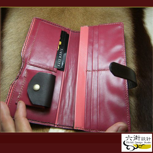 原本客戶透露喜歡編縫的效果,但在作完雕刻及上色後,個人決定改手縫車線整體效果會更適合。外皮取自英國雕刻皮,內皮質全小羊皮則是為了觸感細膩,色系則是相當刻意挑了富戲劇張力的介於桃紅與棗紅間的....不大會形容~只是希望藉由內與外的強烈碰撞間,或許使用者會開啓另一種想像..的視野..