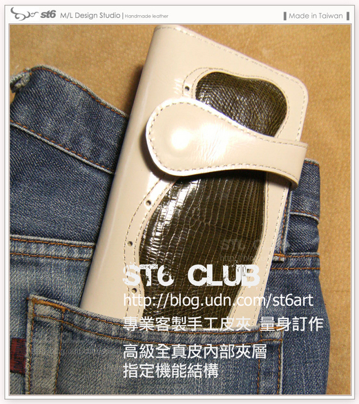 象牙白漆面防水牛皮加入翠綠綠蜥蜴皮,全小羊皮內裡,我想送人或自用都相當體面大方。當然也接受客戶自選色搭配。