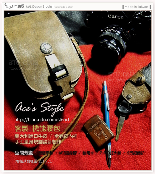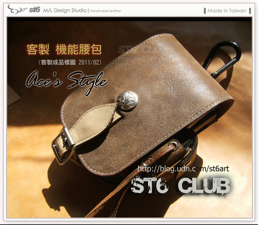 上週三吧上線後msn傳來了個離線訊息,呦喝~ 又是你啊 老客人..啊呵..應該改稱老朋友了。.............第一次讓小弟服務沒記錯的話同樣是在5年前的2月份,要做一件性格的剪刀包,而且要備妥17枝剪刀插槽… 。之後接續幾次一直到今年剛好整整5年~這次的其一就是這件依使用者需求製作的手工真皮腰包;選用了自己相當喜愛的牛皮革作主體,以素雅簡約大方實用為考量,所以縫製及細節處理反倒要稍留意。在做這件時的心情是有種莫名的熟悉氛圍,啊那種使命感又不知打哪漂了過來~我想我完全是處於一個睡眠不足的狀態……Z Z Z ZZZZZZZZZZZ~