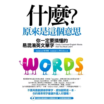 什麼?原來是這個意思?:你一定要搞懂的英文易混淆單字購買網址:http://www.books.com.tw/exep/assp.php/87926/products/0010574005?utm_source=87926&utm_medium=ap-books&utm_content=recommend&utm_campaign=ap-201706