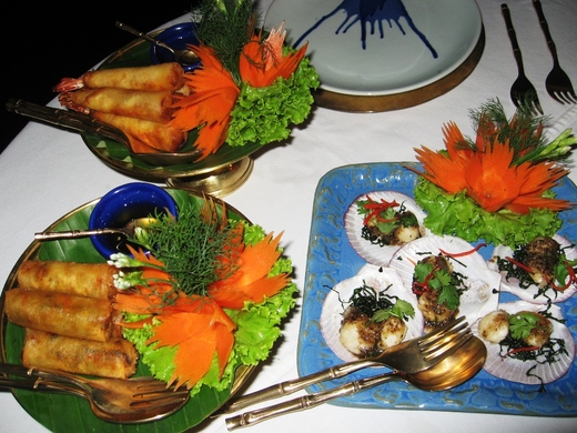 曼谷之所以可以年復一年吸引這麼多觀光客來遊玩,這裡的飲食業是重要原因之一。 來泰國就還是吃泰國菜,這次去的都是泰國朋友口中的老外餐廳, Blue Elephants , Face Bar 和 四季酒店 (Four Seasons Hotel) 的泰國餐廳。 當然,還有百去不厭的傑魚翅( Giek )。 Blue Elephants 在世界各地有許多分店,早有耳聞,只是不知道它最早是開在比利時的布魯塞爾。 難怪它的菜有許多 fusion 的感覺,用醬料 (sauce) 較重較油膩,但是對泰國菜本身的辛辣反而保守,所謂的重辣也不過是一般的小辣。兩個人埋單要五千泰銖左右,還不包括酒水。 我對這家名聲響亮的餐廳滿失望的。 而這裡眾多有錢外國太太喜愛來「進修」的烹飪學校也就算了吧…